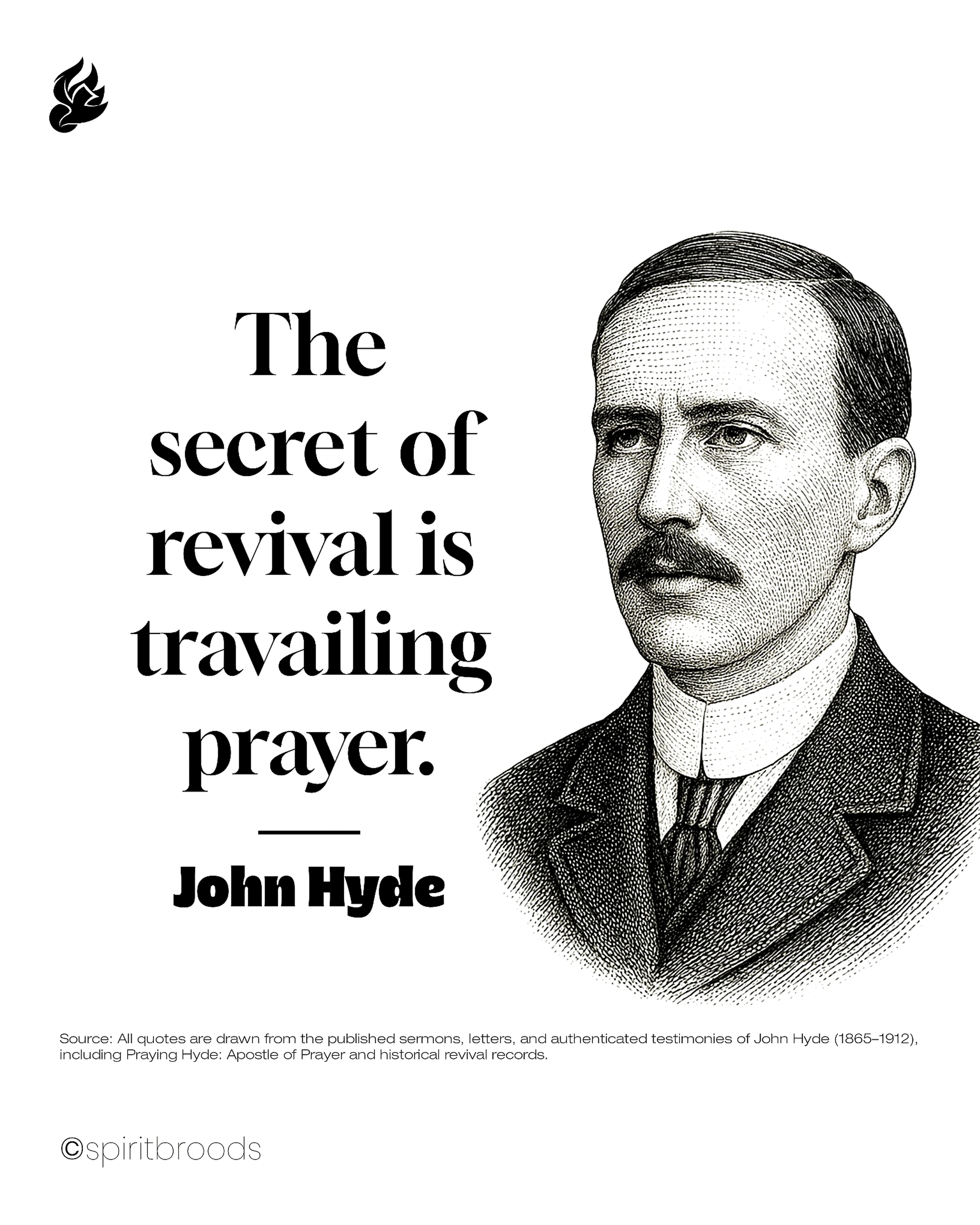 Hyde could not preach much, but he could pray down revival. The power of his life was not in eloquence but in his communion with God.